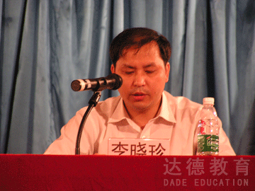 学生代表李智育也在典礼上作了发言。他是2006年春季入学的,上次七月份只参加了一次考试,报考了四门,全部通过。他觉得这些功劳应当归为中山大学的老师的精心辅导。正如他在讲话说“我通过自己的亲身体会,真正的感受到了达德的办学实力和师资力量,同时,我也向其他的同学了解过,上一次考试绝大多数同学都通过了,事实证明,达德确实是我们每个渴望成功的人的正确选择。”
