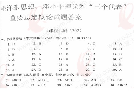 毛泽东思想、邓小平理论和“三个代表”重要思想概论试题及答案